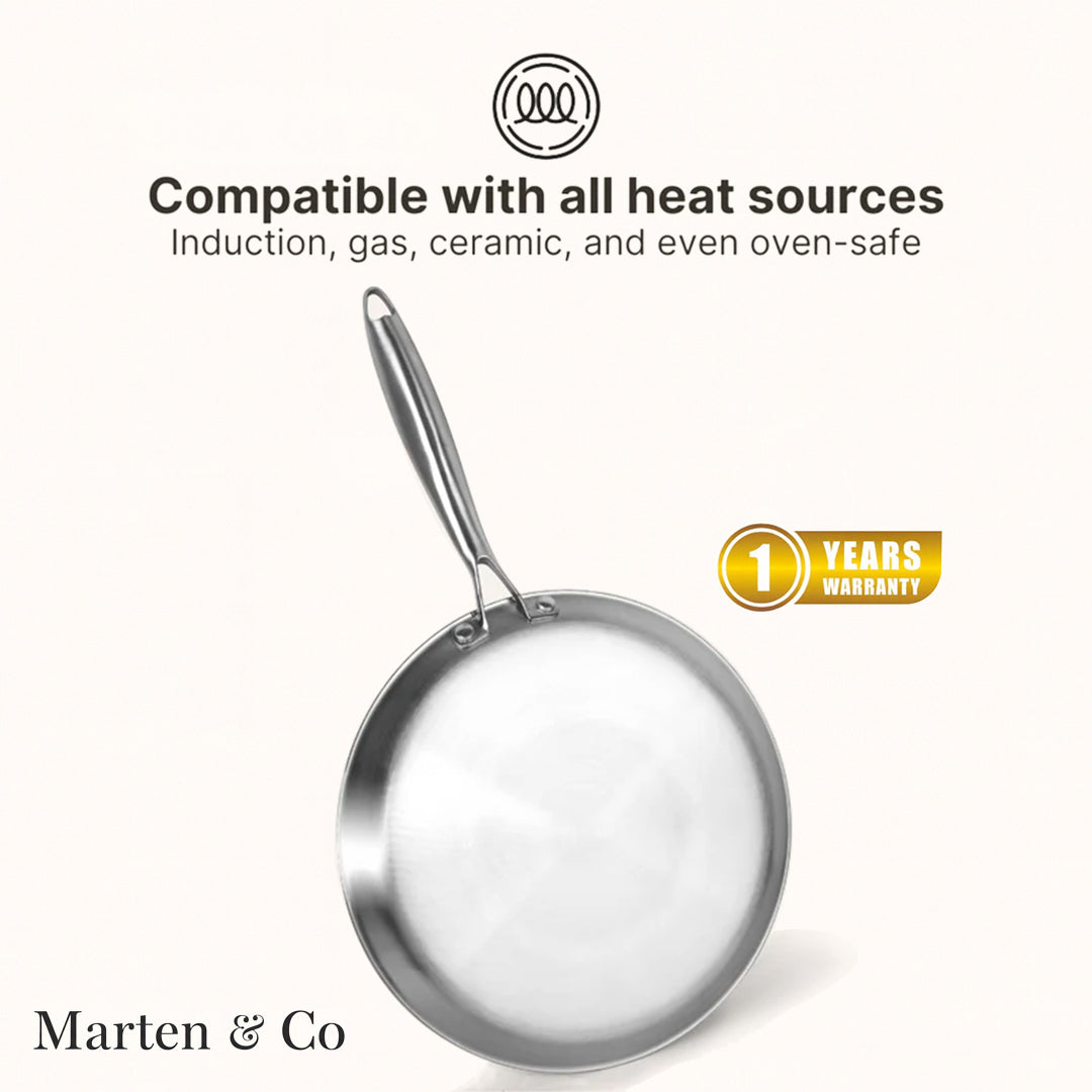 Stainless steel lacks antibacterial properties, leaches nickel and chromium into acidic foods, and demands more oil for cooking. Marten & Co.’s titanium cookware is naturally antibacterial, non-reactive, and retains 40% more nutrients, making it the healthier, high-performance choice.
